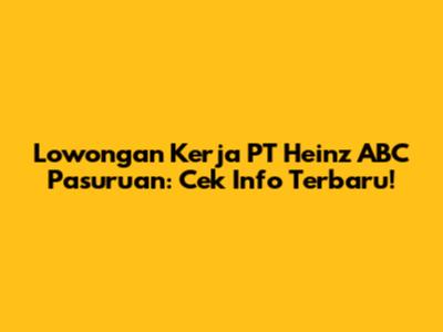 Lowongan Kerja PT Heinz ABC Pasuruan: Cek Info Terbaru!