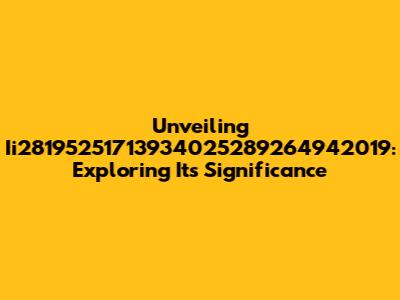 Unveiling Ii28195251713934025289264942019: Exploring Its Significance