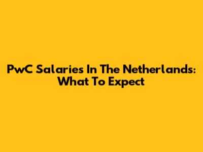PwC Salaries In The Netherlands: What To Expect