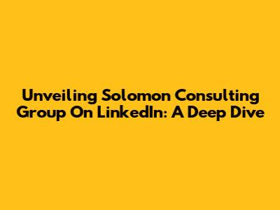 Unveiling Solomon Consulting Group On LinkedIn: A Deep Dive
