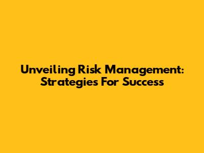 Unveiling Risk Management: Strategies For Success