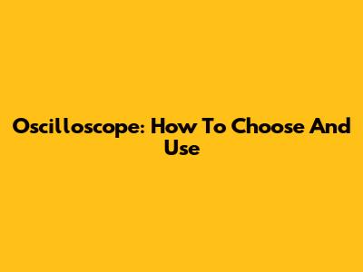Oscilloscope: How To Choose And Use