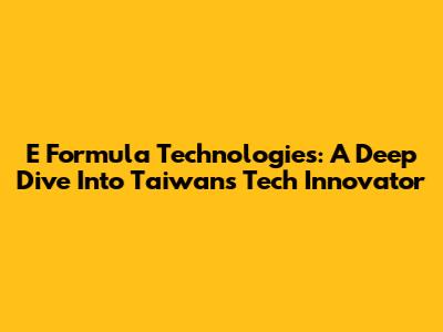 E Formula Technologies: A Deep Dive Into Taiwan's Tech Innovator
