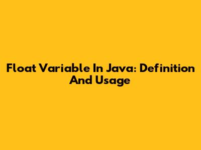 Float Variable In Java: Definition And Usage
