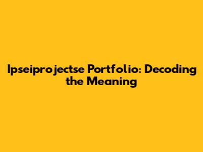 Unveiling the Mystery: Ipseiprojectse and Its Portfolio