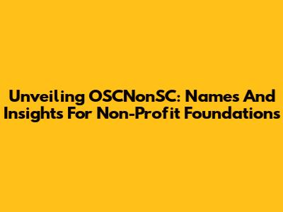 Unveiling OSCNonSC: Names And Insights For Non-Profit Foundations