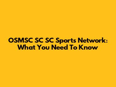 OSMSC SC SC Sports Network: What You Need To Know