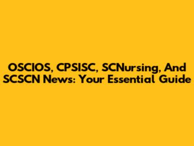 OSCIOS, CPSISC, SCNursing, And SCSCN News: Your Essential Guide