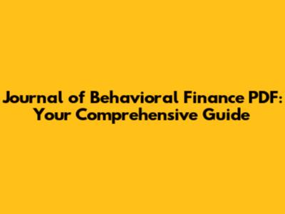 In conclusion, seeking out a PDF version of the Journal of Behavioral Finance articles is a practical and convenient way to access, read, store, and share important research. Whether you're a student, researcher, or practitioner, PDFs offer numerous benefits that can enhance your learning and work.