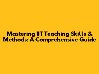 Mastering IIT Teaching Skills & Methods: A Comprehensive Guide