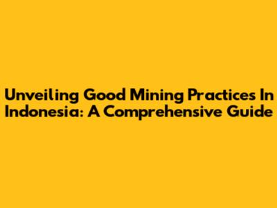 Unveiling Good Mining Practices In Indonesia: A Comprehensive Guide