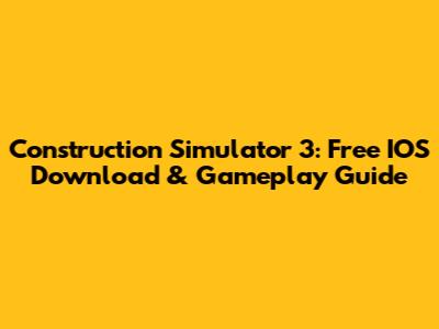 Construction Simulator 3: Free IOS Download & Gameplay Guide