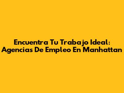 Encuentra Tu Trabajo Ideal: Agencias De Empleo En Manhattan