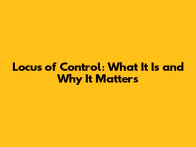 Why Locus of Control Matters