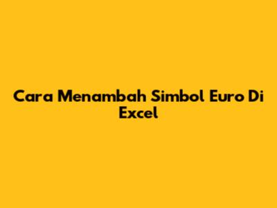 Cara Menambah Simbol Euro Di Excel