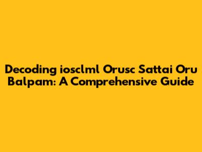 Decoding 'iosclml Orusc Sattai Oru Balpam': A Comprehensive Guide