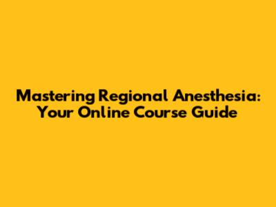 Hey everyone! Are you ready to dive into the fascinating world of regional anesthesia? Whether you're a seasoned anesthesiologist looking to sharpen your skills or a medical student eager to learn the ropes, an online course is a fantastic way to do it. But with so many options out there, how do you choose the right one? Don't worry, guys, I've got you covered! In this guide, we'll explore everything you need to know about regional anesthesia online courses, from what to look for in a program to the benefits of learning at your own pace. So, let's get started!