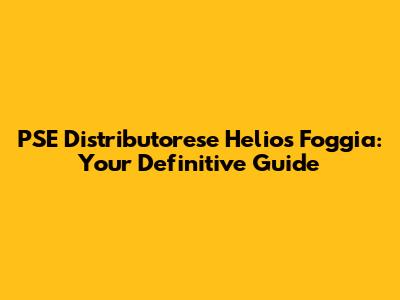 PSE Distributorese Helios Foggia: Your Definitive Guide