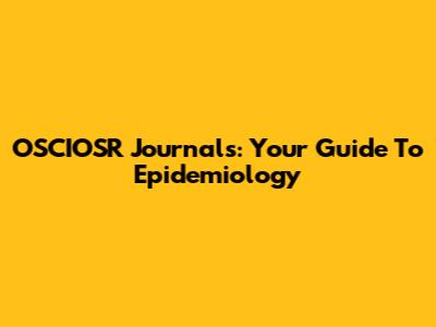 OSCIOSR Journals: Your Guide To Epidemiology