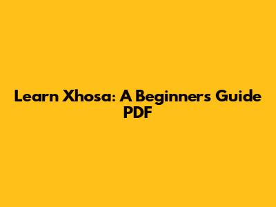 Learn Xhosa: A Beginner's Guide PDF