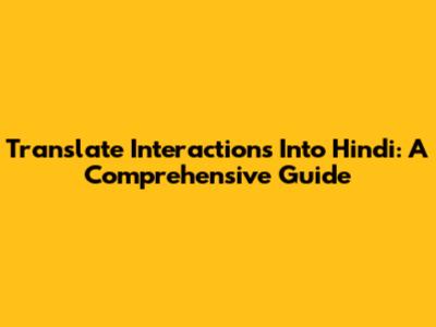 Translate Interactions Into Hindi: A Comprehensive Guide