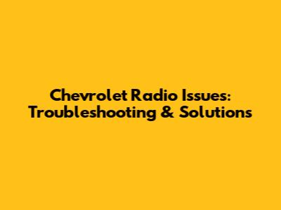 Chevrolet Radio Issues: Troubleshooting & Solutions