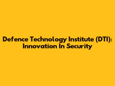 Defence Technology Institute (DTI): Innovation In Security