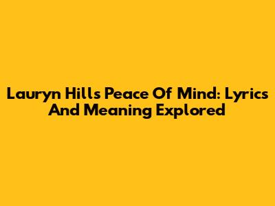 Lauryn Hill's Peace Of Mind: Lyrics And Meaning Explored