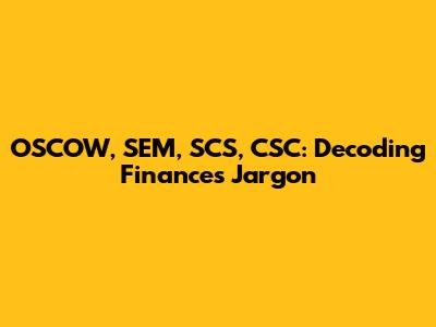 OSCOW, SEM, SCS, CSC: Decoding Finance's Jargon