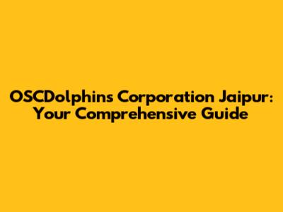 OSCDolphins Corporation Jaipur: Your Comprehensive Guide