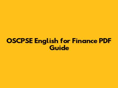 Where to Find Your OSCPSE English for Finance PDF Treasure