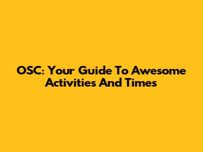 OSC: Your Guide To Awesome Activities And Times