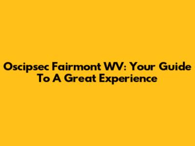 Oscipsec Fairmont WV: Your Guide To A Great Experience