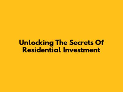 Unlocking The Secrets Of Residential Investment