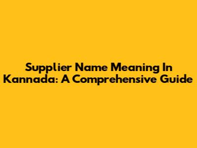 Supplier Name Meaning In Kannada: A Comprehensive Guide