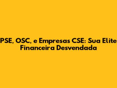 PSE, OSC, e Empresas CSE – essas siglas podem parecer um código secreto para a maioria das pessoas, mas, na verdade, elas abrem as portas para um mundo de oportunidades financeiras e estratégias de investimento de ponta. Se você está buscando ascensão financeira, otimização de investimentos e compreender o mercado financeiro de forma mais aprofundada, este guia é para você. Vamos descomplicar cada um desses termos, entender como eles se conectam e como você pode usar esse conhecimento para alcançar seus objetivos financeiros. Prepare-se para uma jornada que vai transformar sua maneira de pensar sobre dinheiro e investimentos!