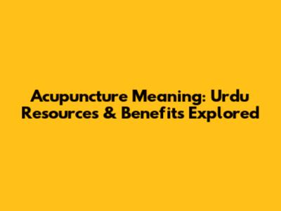 Acupuncture Meaning: Urdu Resources & Benefits Explored