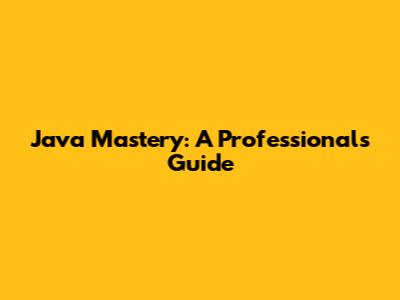 Java Mastery: A Professional's Guide