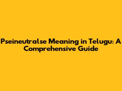 Understanding the nuances of language can sometimes feel like navigating a maze, especially when encountering unfamiliar terms. In this comprehensive guide, we'll unravel the meaning of "pseineutralse" in Telugu, providing you with a clear and detailed explanation. Whether you're a language enthusiast, a student, or simply curious, this article aims to equip you with the knowledge you need to confidently understand and use this term. Let's dive in and explore the depths of "pseineutralse" in the beautiful Telugu language.