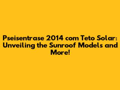 Hey guys! Ever wondered about the Pseisentrase 2014, especially those models rocking the teto solar (sunroof)? Well, you've come to the right place. We're diving deep into what makes these cars special, focusing on the sunroof feature and other cool aspects that made the 2014 Pseisentrase a popular choice. Buckle up; it's gonna be a fun ride!