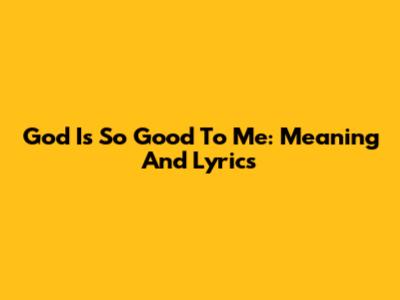 God Is So Good To Me: Meaning And Lyrics
