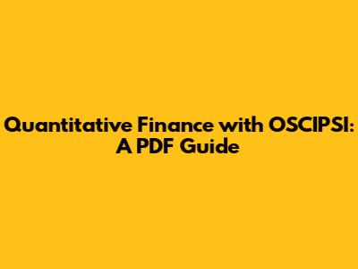 Hey guys! Ever wondered how the complex world of finance meets the precision of quantitative analysis? Well, buckle up because we're diving into quantitative finance, especially as it relates to the OSCIPSI (Organismo Supervisor de las Contrataciones del Estado). This guide will help you navigate the essentials, and we'll point you to some useful PDF resources along the way. Let’s break down what it all means and how you can get started.