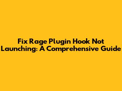 Fix Rage Plugin Hook Not Launching: A Comprehensive Guide