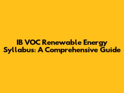 IB VOC Renewable Energy Syllabus: A Comprehensive Guide