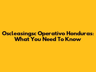 Oscleasingsc Operativo Honduras: What You Need To Know