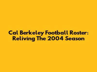 Cal Berkeley Football Roster: Reliving The 2004 Season