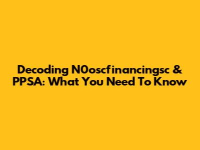 Decoding N0oscfinancingsc & PPSA: What You Need To Know