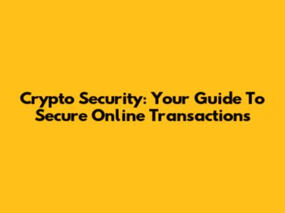 Crypto Security: Your Guide To Secure Online Transactions
