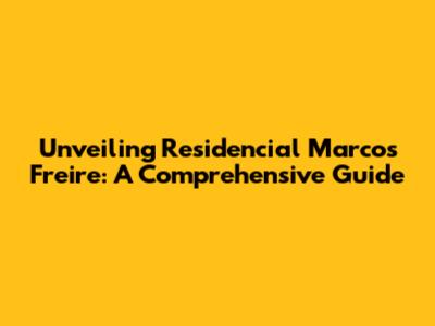Unveiling Residencial Marcos Freire: A Comprehensive Guide