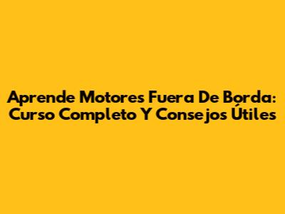 Aprende Motores Fuera De Borda: Curso Completo Y Consejos Útiles